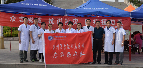 洪水無情,天使有愛。8月18日,為做好濱州市利奇馬臺風(fēng)災(zāi)后醫(yī)療救助工作,應(yīng)濱州市衛(wèi)生健康委要求,濱州醫(yī)學(xué)院附屬醫(yī)院緊急組織23人的應(yīng)急醫(yī)療隊,分成兩組,在副院長陳強譜、