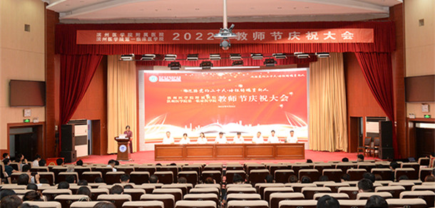在全國第38個(gè)教師節(jié)來臨之際,9月8日下午,濱州醫(yī)學(xué)院附屬醫(yī)院(第一臨床醫(yī)學(xué)院)2022年教師節(jié)慶祝大會(huì)在影視廳隆重舉行。全體院領(lǐng)導(dǎo)、醫(yī)院副護(hù)士長(zhǎng)以上干部、受表彰教師代表、