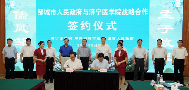 8月16日,濟(jì)寧醫(yī)學(xué)院與鄒城市戰(zhàn)略合作簽約儀式在鄒城擇鄰山莊隆重舉行。濟(jì)寧醫(yī)學(xué)院黨委書(shū)記馬安寧,黨委副書(shū)記、院長(zhǎng)白波,黨委副書(shū)記高哲學(xué),副院長(zhǎng)李建軍,