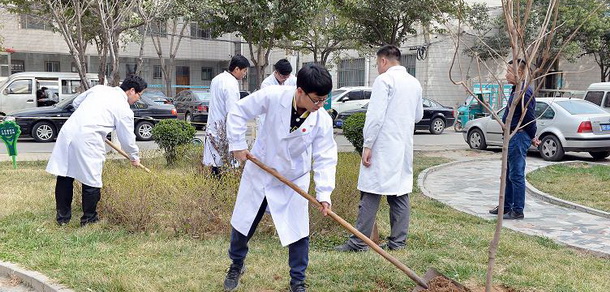 為推進生態(tài)文明建設,增強醫(yī)院職工的環(huán)保和綠化意識,營造人人植樹、美化環(huán)境的良好氛圍,聊城市腫瘤醫(yī)院舉辦了植樹節(jié)綠化活動。 揮鍬鏟土、踩土定植、提水