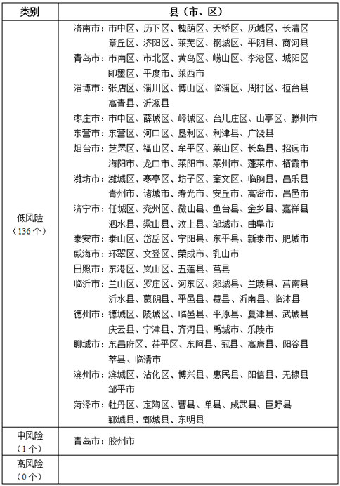 山東省新冠肺炎疫情分區(qū)分級表(最新)