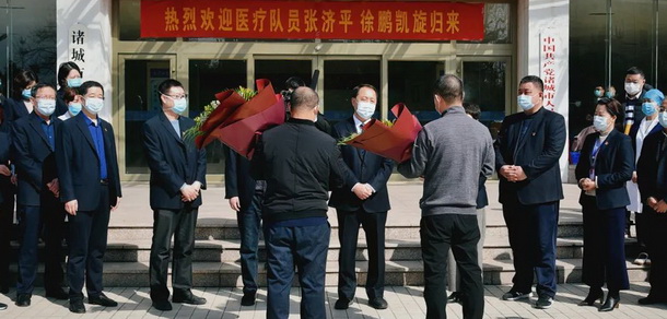 3月11日,是諸城市人民醫(yī)院援濰醫(yī)療隊(duì)員張濟(jì)平、徐鵬圓滿完成任務(wù)后解除隔離的日子,為了迎接最美逆行者凱旋歸來(lái)。上午,院黨委書(shū)記孫魯安帶領(lǐng)院領(lǐng)導(dǎo)班子全體成員及相關(guān)科室負(fù)