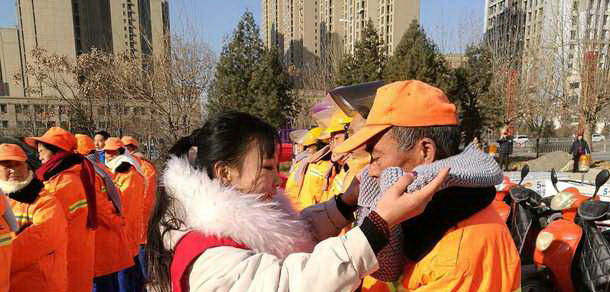 2018年1月10日上午,泰山護理職業(yè)學院天使織女團的青年志愿者在學工處處長、團委書記張向民的帶領(lǐng)下,頂著凜冽得寒風,來到了泰安市環(huán)衛(wèi)處五公司駐地,給環(huán)衛(wèi)
