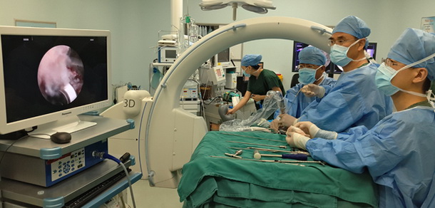 6月12日,濱州醫(yī)學(xué)院附屬醫(yī)院脊柱外科為一位老年腰椎滑脫癥患者成功實(shí)施椎間孔鏡下椎間融合器植骨融合術(shù)。經(jīng)檢索,此項(xiàng)技術(shù)為省內(nèi)首例微創(chuàng)脊柱內(nèi)鏡下脊柱融合技術(shù),填補(bǔ)了我省