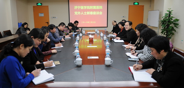 在2016年新春佳節(jié)來(lái)臨之際,2月3日下午,濟(jì)醫(yī)附院在6號(hào)樓2號(hào)會(huì)議室召開(kāi)黨外人士新春座談會(huì)。院黨委書(shū)記司傳平出席會(huì)議并講話,黨委副書(shū)記、副院長(zhǎng)胡文杰、各民