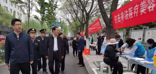 為進(jìn)一步加強(qiáng)醫(yī)療美容市場(chǎng)監(jiān)管力度,整治醫(yī)療美容亂象,4月25日上午,曲阜市在沂河廣場(chǎng)開(kāi)展打擊非法醫(yī)療美容宣傳周活動(dòng)啟動(dòng)儀式。啟動(dòng)儀式由市衛(wèi)生健康局副局長(zhǎng)王曉倩主持,市