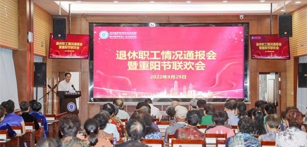 金風(fēng)送爽,丹桂飄香。9月29日,濱州醫(yī)學(xué)院煙臺附屬醫(yī)院舉行退休職工情況通報會暨重陽節(jié)聯(lián)歡會,院領(lǐng)導(dǎo)劉大華、王強、孫書勤、張曉明出席會議,工會主席、離退休工作處負責(zé)人李