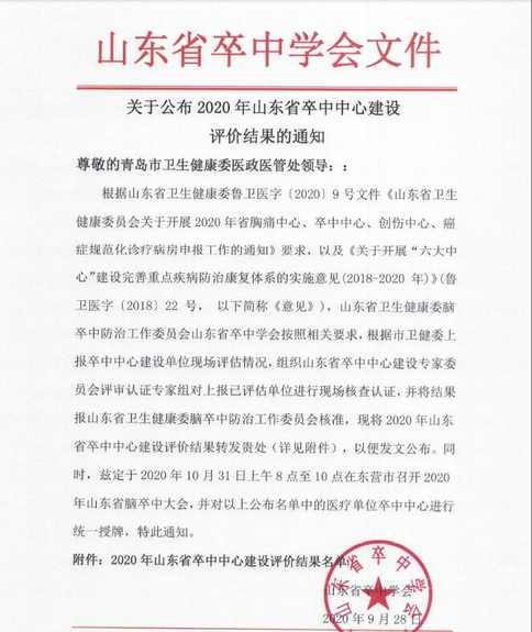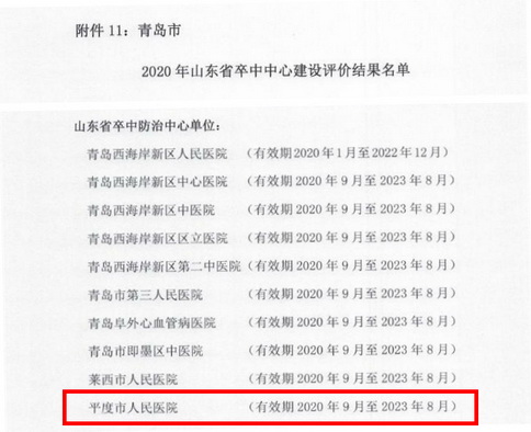 近日,山東省衛(wèi)生健康委員會(huì)腦卒中防治工作委員會(huì)公布《2020年山東省卒中中心建設(shè)評(píng)價(jià)結(jié)果名單》,平度市人民醫(yī)院成功成為山東省卒中防治中心單位。將于10月31日在東營(yíng)市召開(kāi)2020年山東省腦卒中大會(huì),并對(duì)平度市人民醫(yī)院進(jìn)行授牌。