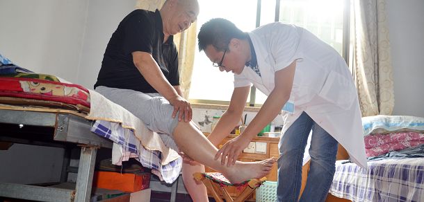 9月13日下午,來(lái)自山東省淄博市中西醫(yī)結(jié)合醫(yī)院針灸科的醫(yī)護(hù)人員一行來(lái)到駐地夕陽(yáng)紅老年公寓,為這里的老人義務(wù)巡診。